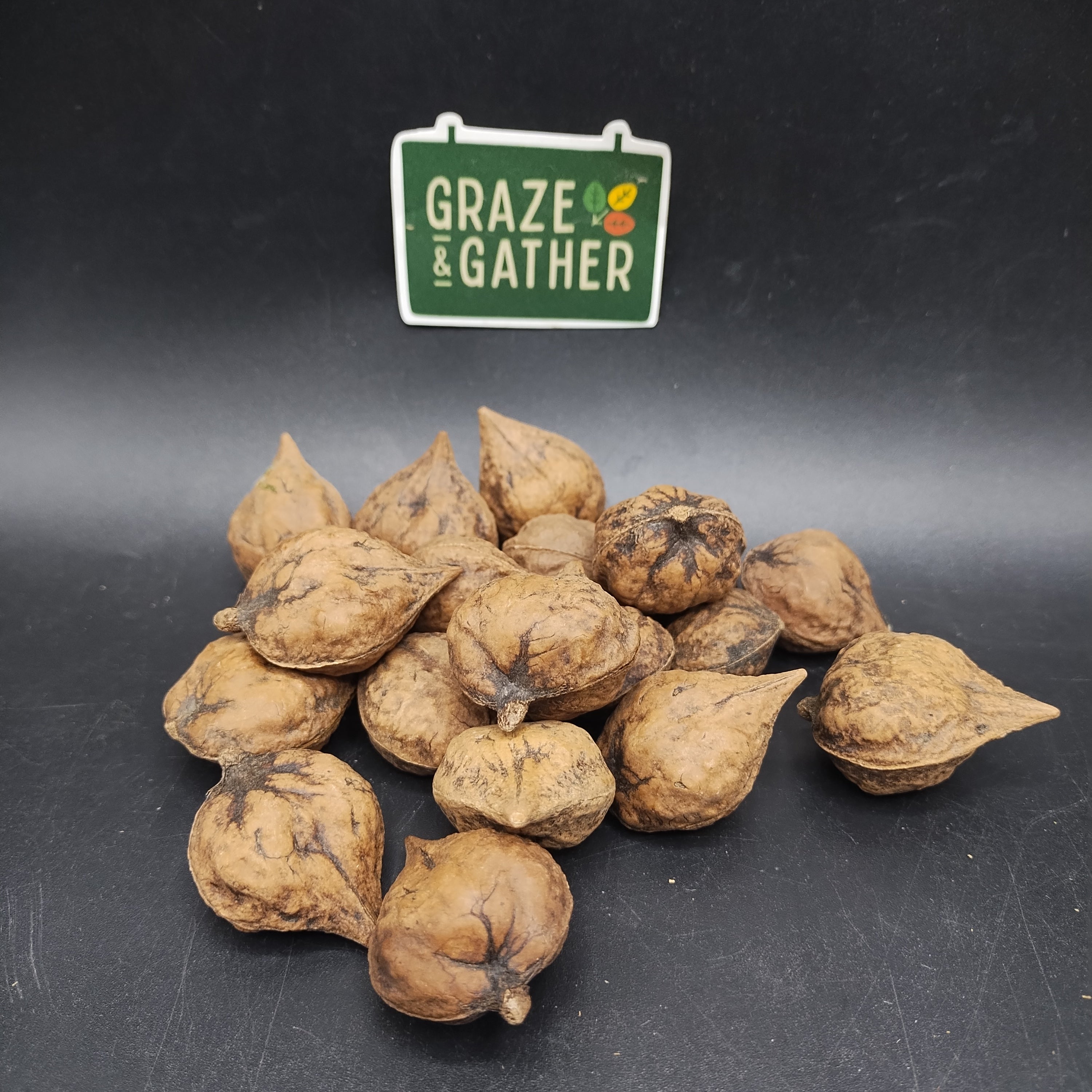 These nuts are tough to crack! We find a hammer and a hard surface works the best for cracking these lovely nuts open.