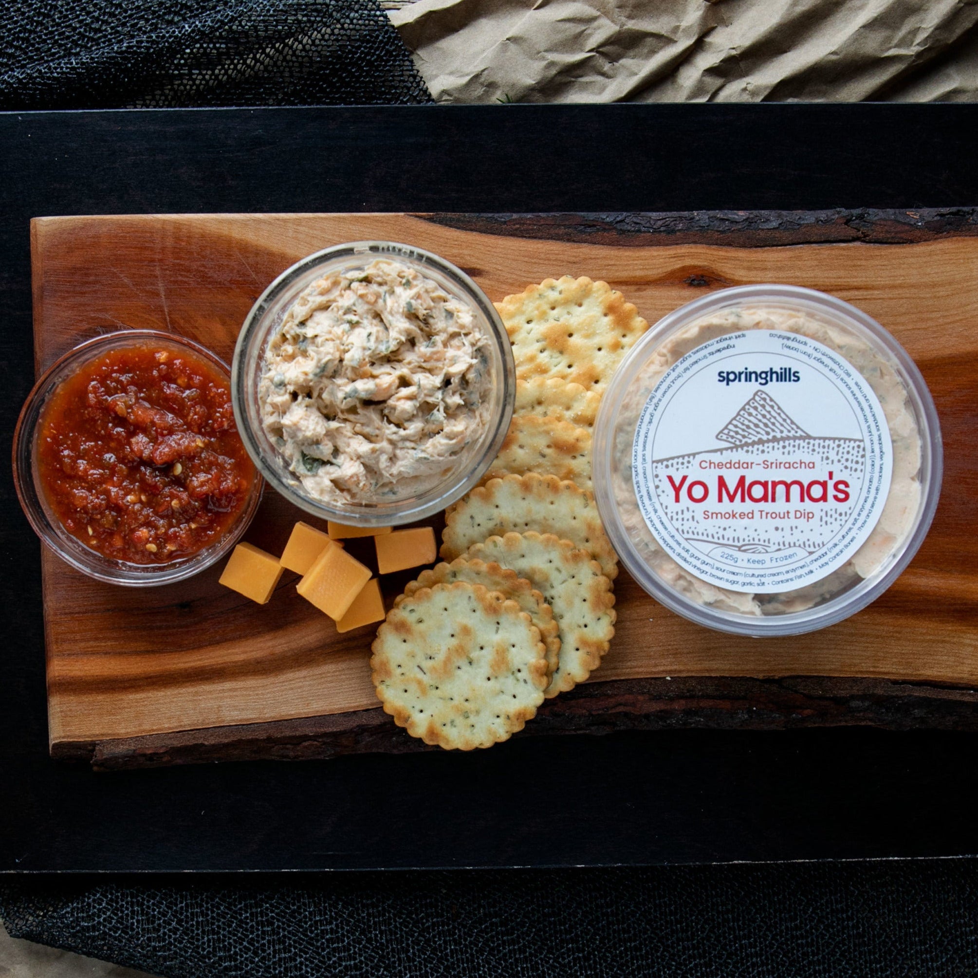 Yo Mama's dip is an old family recipe that combines your favourite smoked trout with sriracha and cheddar. It's the perfect creamy blend of sweet and heat for every palate. Serve with crackers, vegetables, sandwiches and more.
