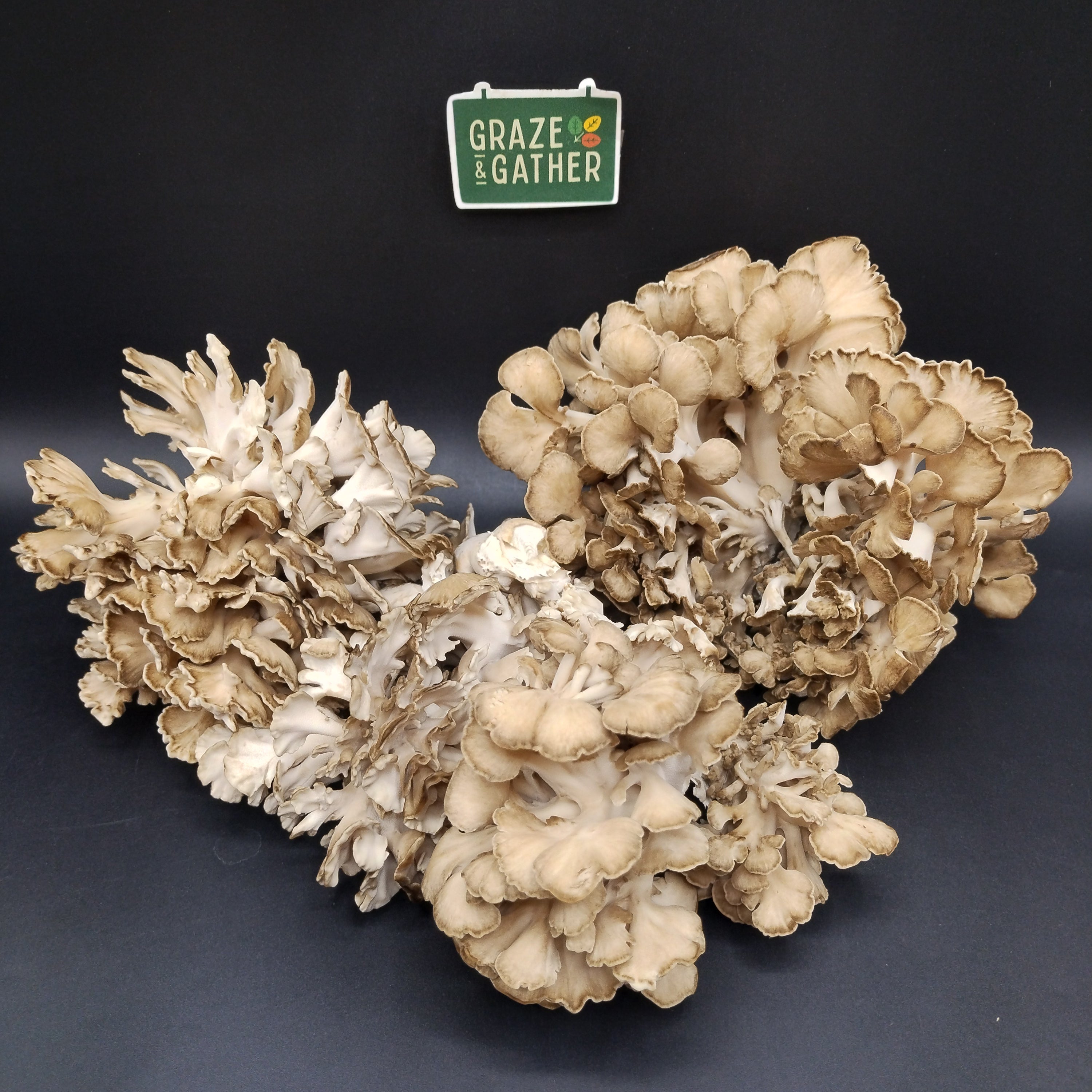 These Maitake mushrooms are cultivated by the folks at Weth Mushrooms in Goderich. Grown in their organic certified facility, cultivated mushrooms are generally easier to clean and prepare than wild mushrooms.