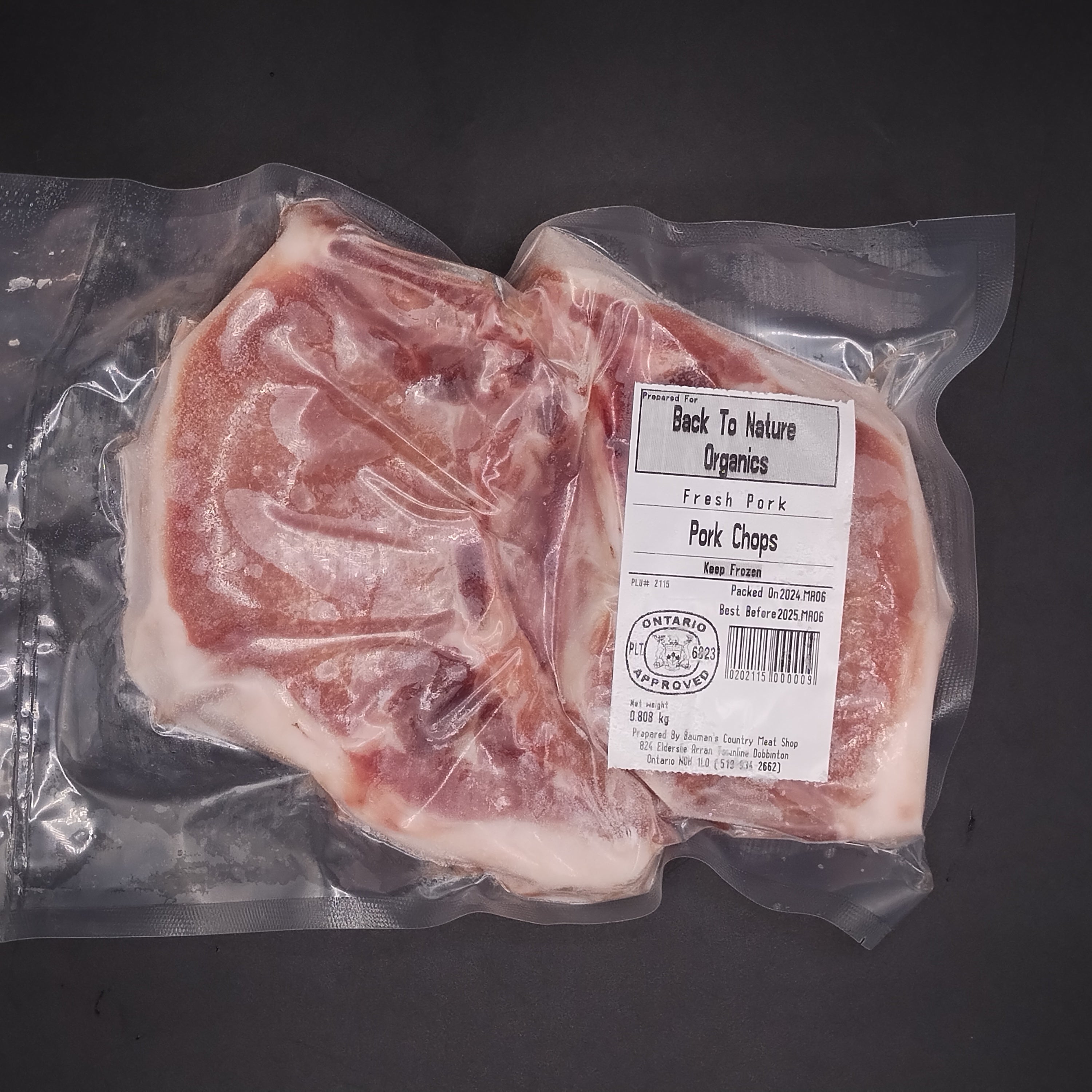 With each package containing two portions, our pork loin chops come from happy piglets that are moved outdoors after they are weaned. They have access to cozy huts and plenty of fresh grass to graze on, as well as opportunities to root for insects. They also enjoy Certified organic, Non-GMO Grain and fresh water, and are regularly rotated around the pasture for a never-ending supply of tasty greens.