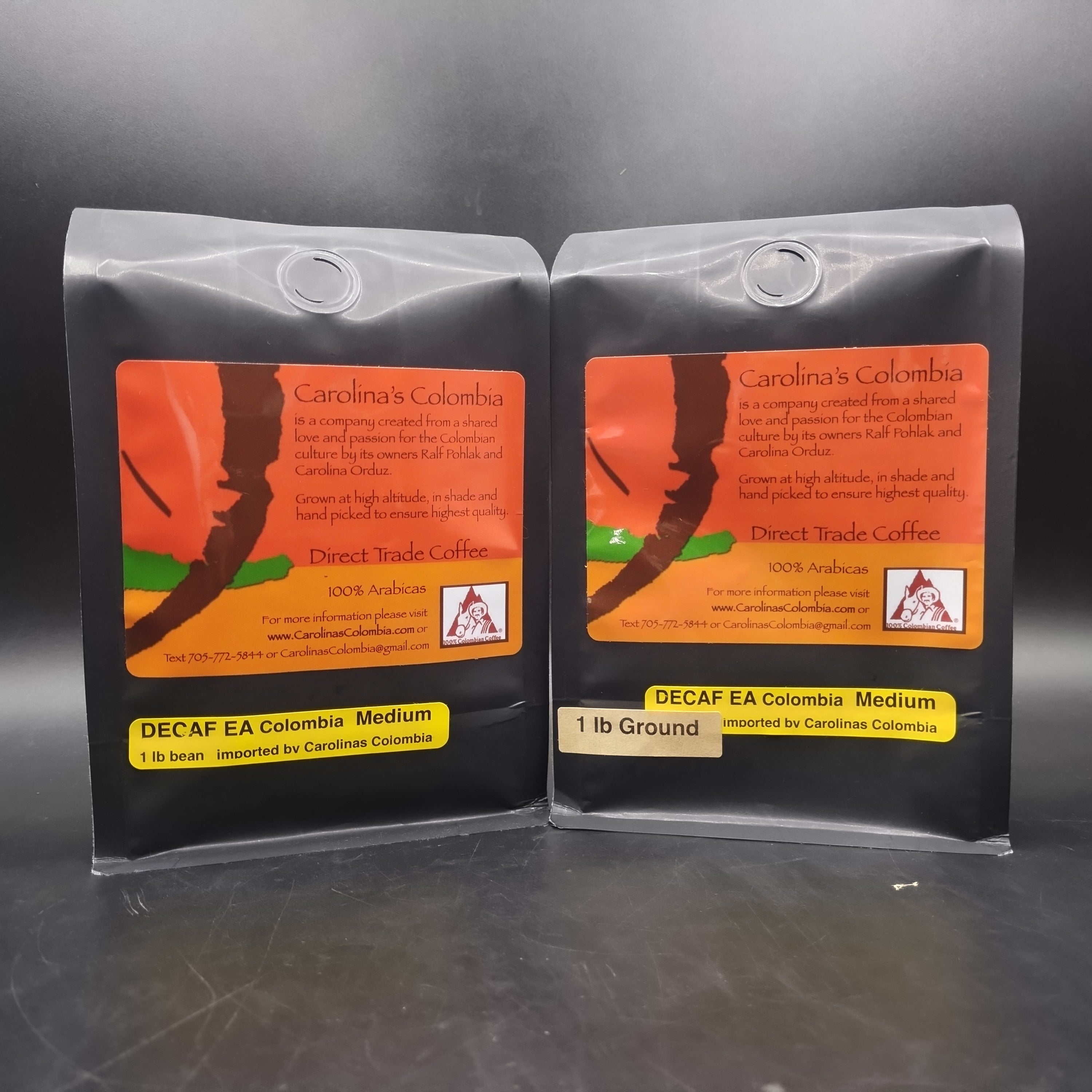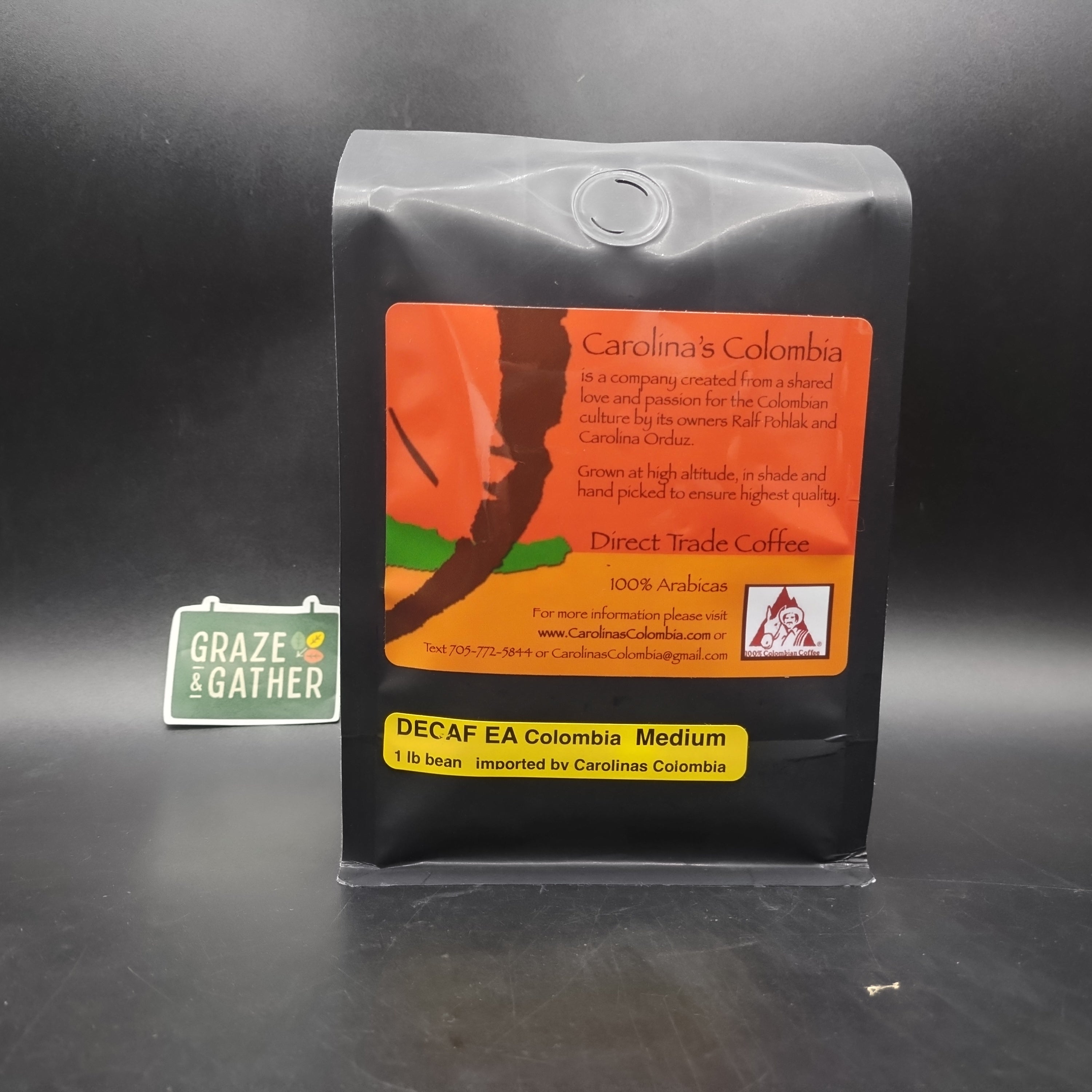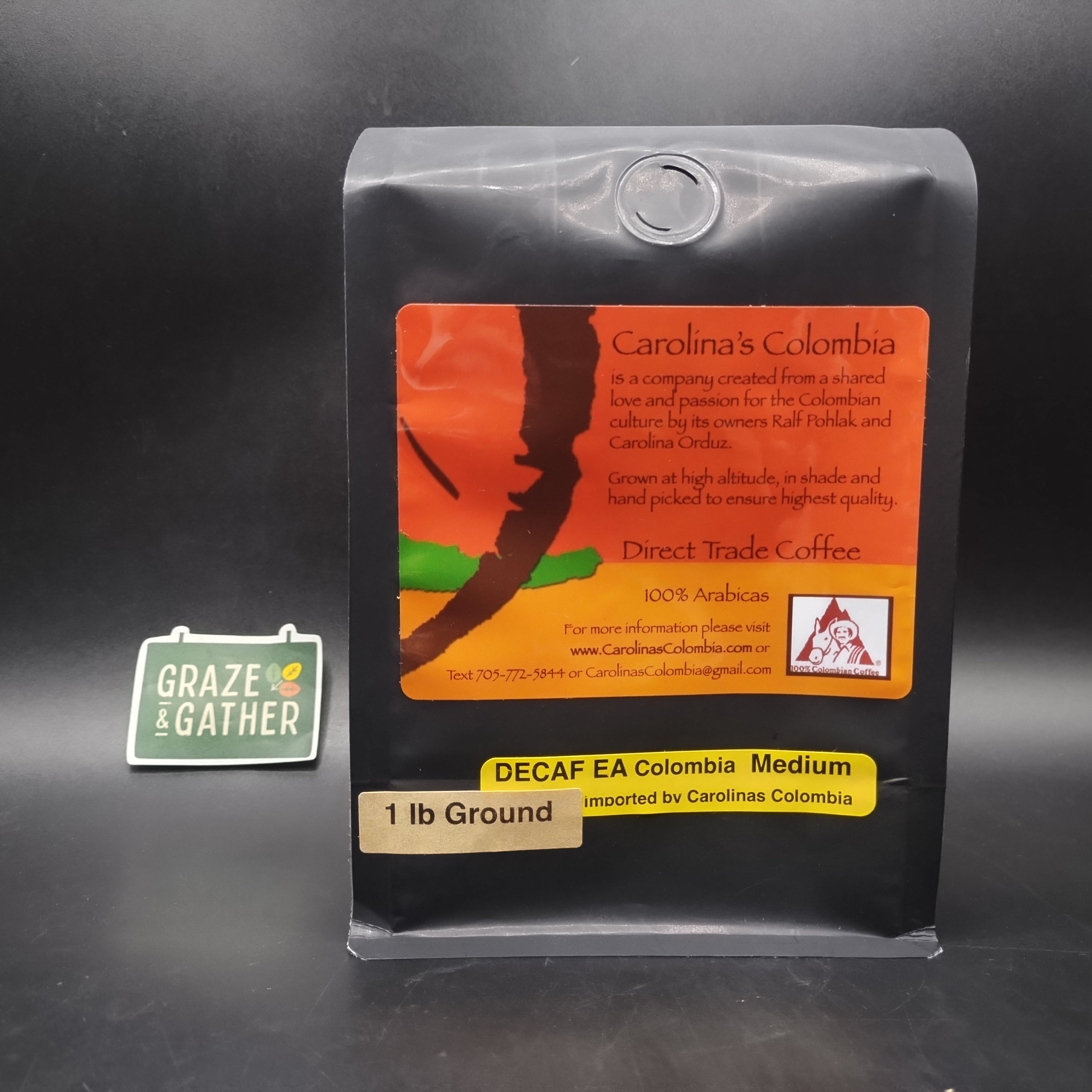 This Colombian coffee has been decaffeinated by ethyl acetate, which is a natural process that involves soaking the beans in an alcohol made with fermented fruit and sugar cane.