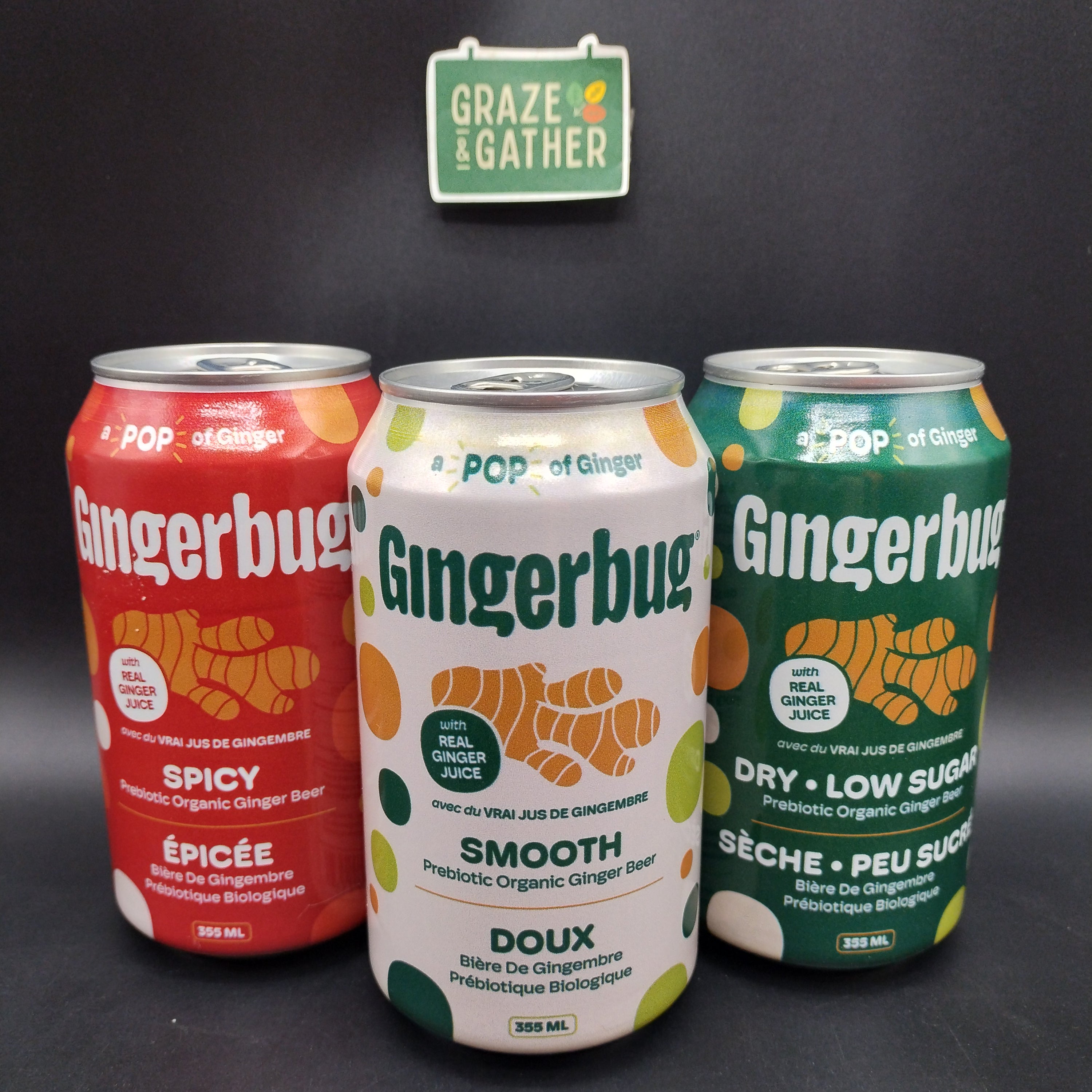 Our prebiotic Dry Gingerbug offers all the benefits of the Original Gingerbug with a cleaner, lighter profile. With only 4g of sugar and 30 calories per can, this gluten-free, Non-GMO ginger beer is crafted using organic ginger juice, organic apple cider vinegar, and a hint of lime, making it both refreshing and gut-friendly.