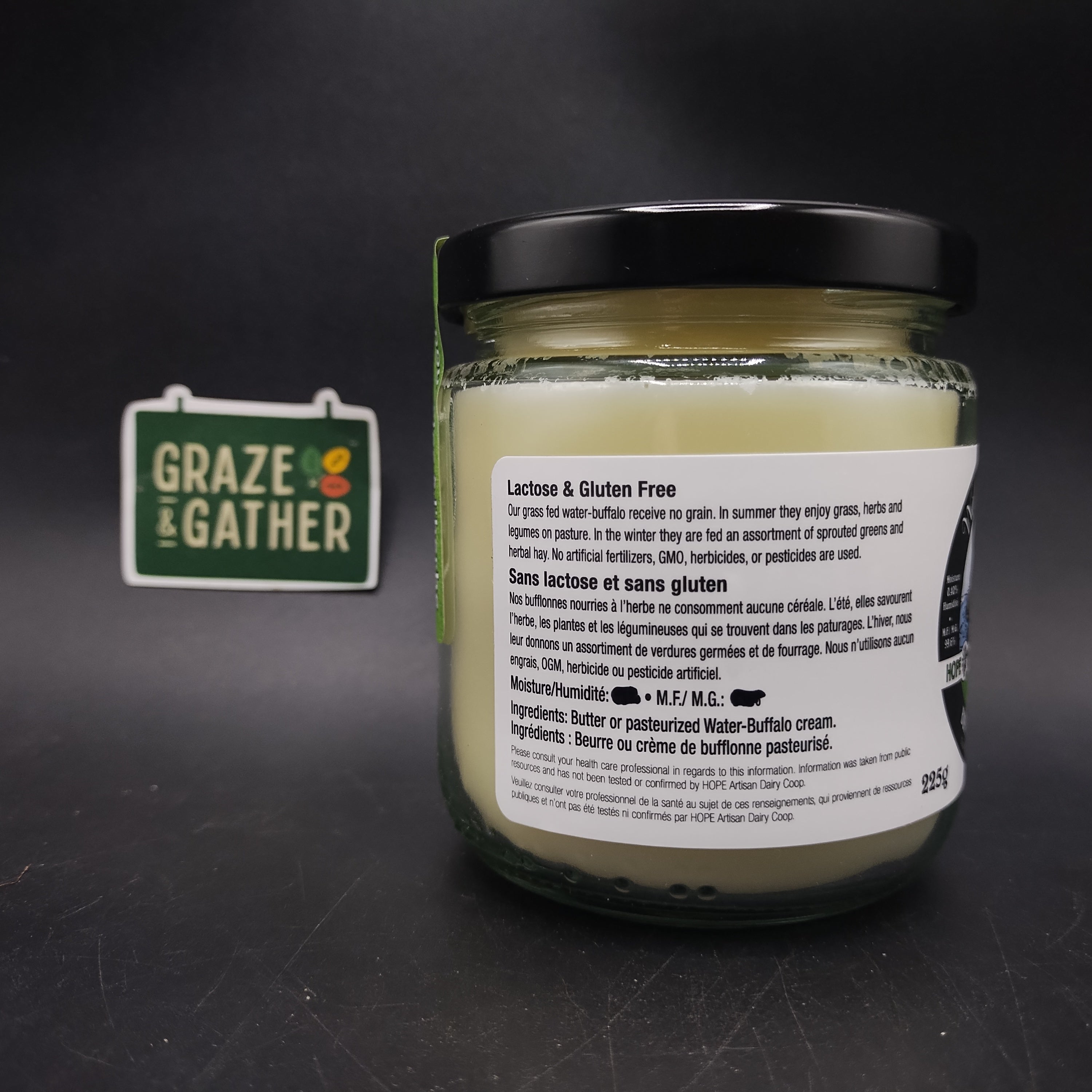 H.O.P.E. Eco Farm's water-buffalo receive no grain; in the summer, they graze on fresh grass, herbs, and legumes, while in winter, they enjoy a diet of sprouted greens and herbal hay. Produced without artificial fertilizers, GMOs, herbicides, or pesticides.