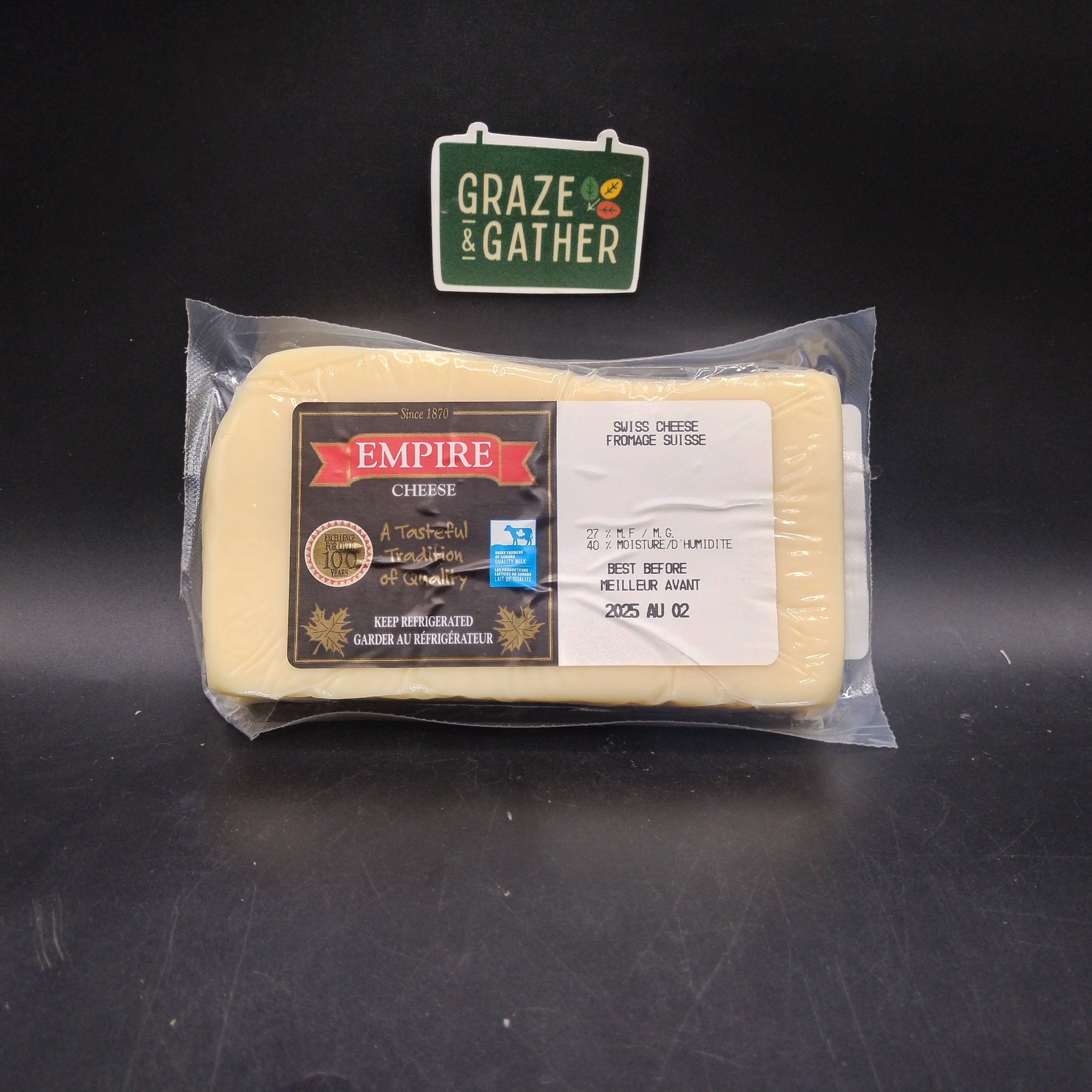 The option of six slices of locally made Swiss-style cheese, or a 12oz (300g) piece!
