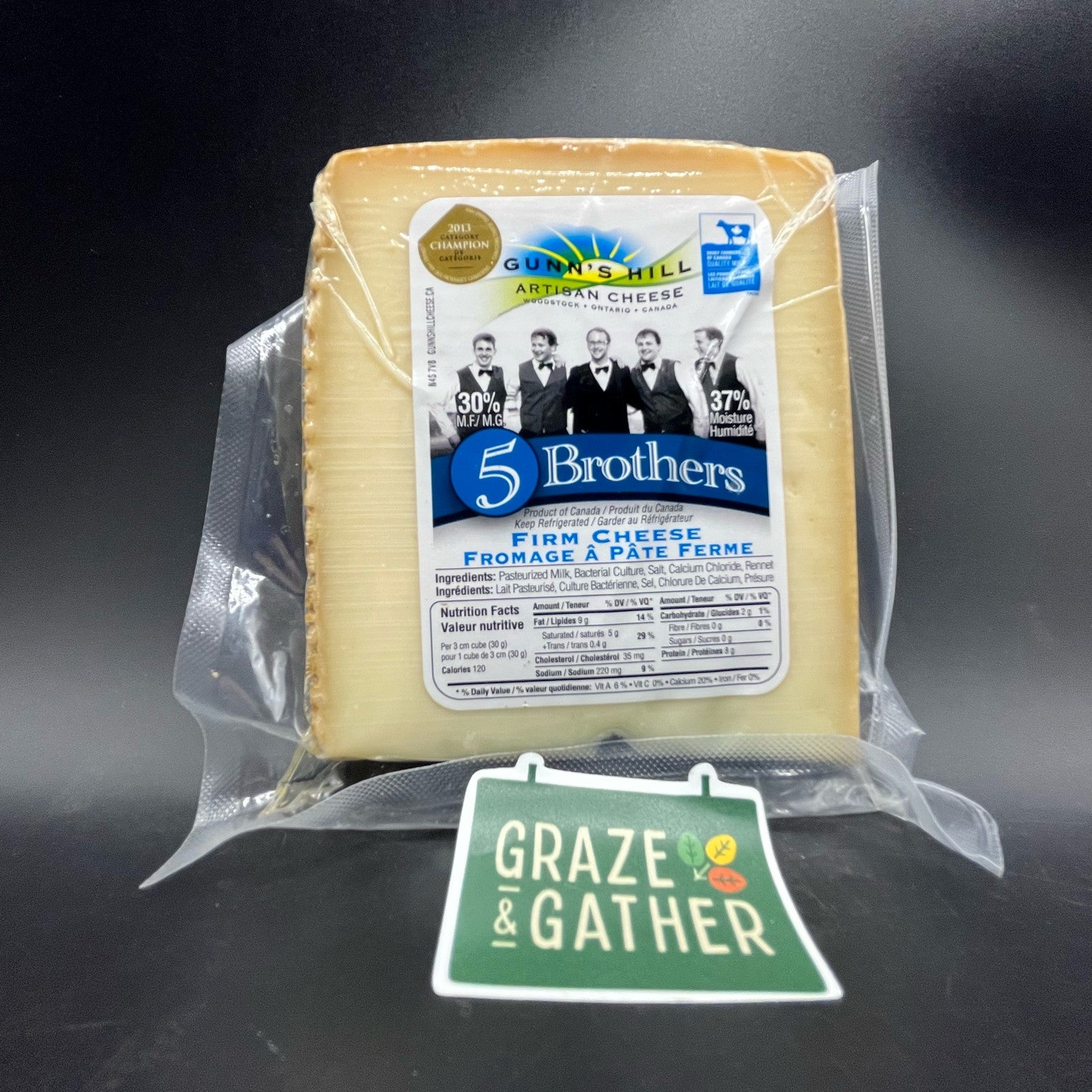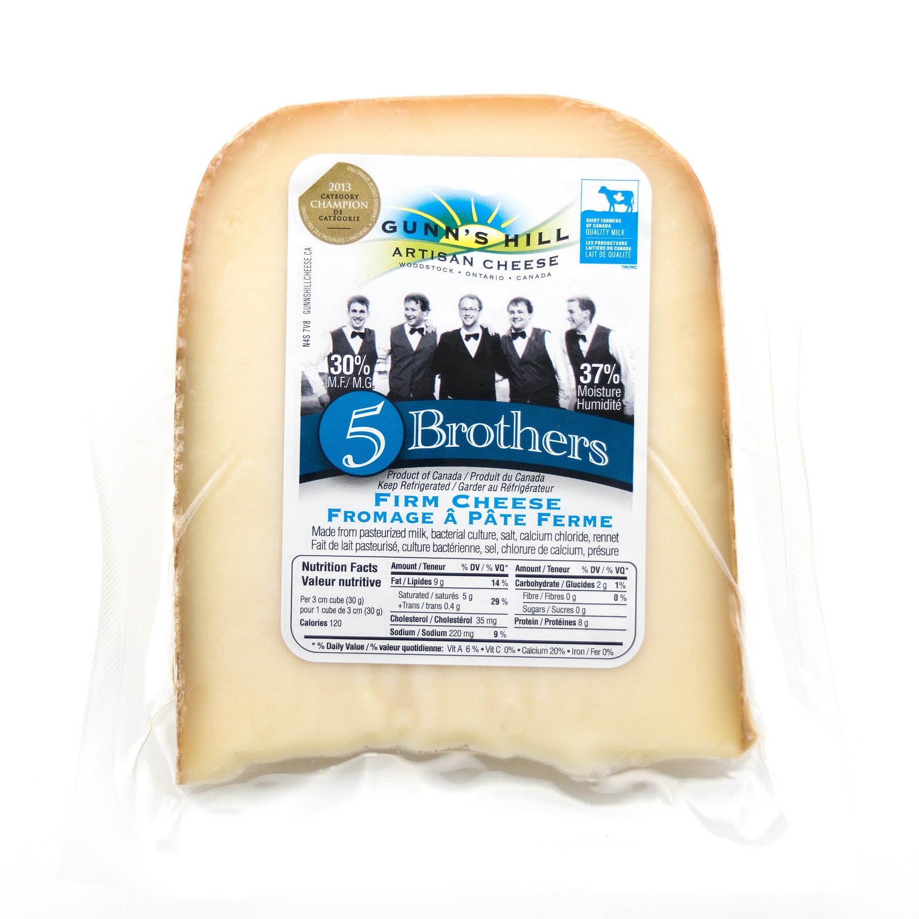 This is a hand crafted washed rind cow's milk cheese that combines traits from Gouda and another Swiss variety called Appenzeller. It is delicately aged on cedar wood planks adding robust flavors to the cheese. It has creamy and rich flavors with sweeter overtones and distinctive eyes throughout the body of the cheese. All of the milk used comes from the family dairy farm of Gunn's Hill Artisan Cheese in Woodstock, Ontario. It pairs well with white wines such as Chardonnay and Sauvignon Blanc and also Pilsner beers.