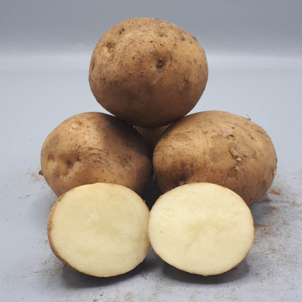 Chaleur potatoes are round or oval shaped with smooth, buff skin and white flesh. This early maturing variety is a great all-purpose potato, meaning they are excellent for boiling, baking, salads, and french fries. They have a creamy taste and texture, and are a favourite for restaurants and chips trucks as the skin doesn't need to be peeled.