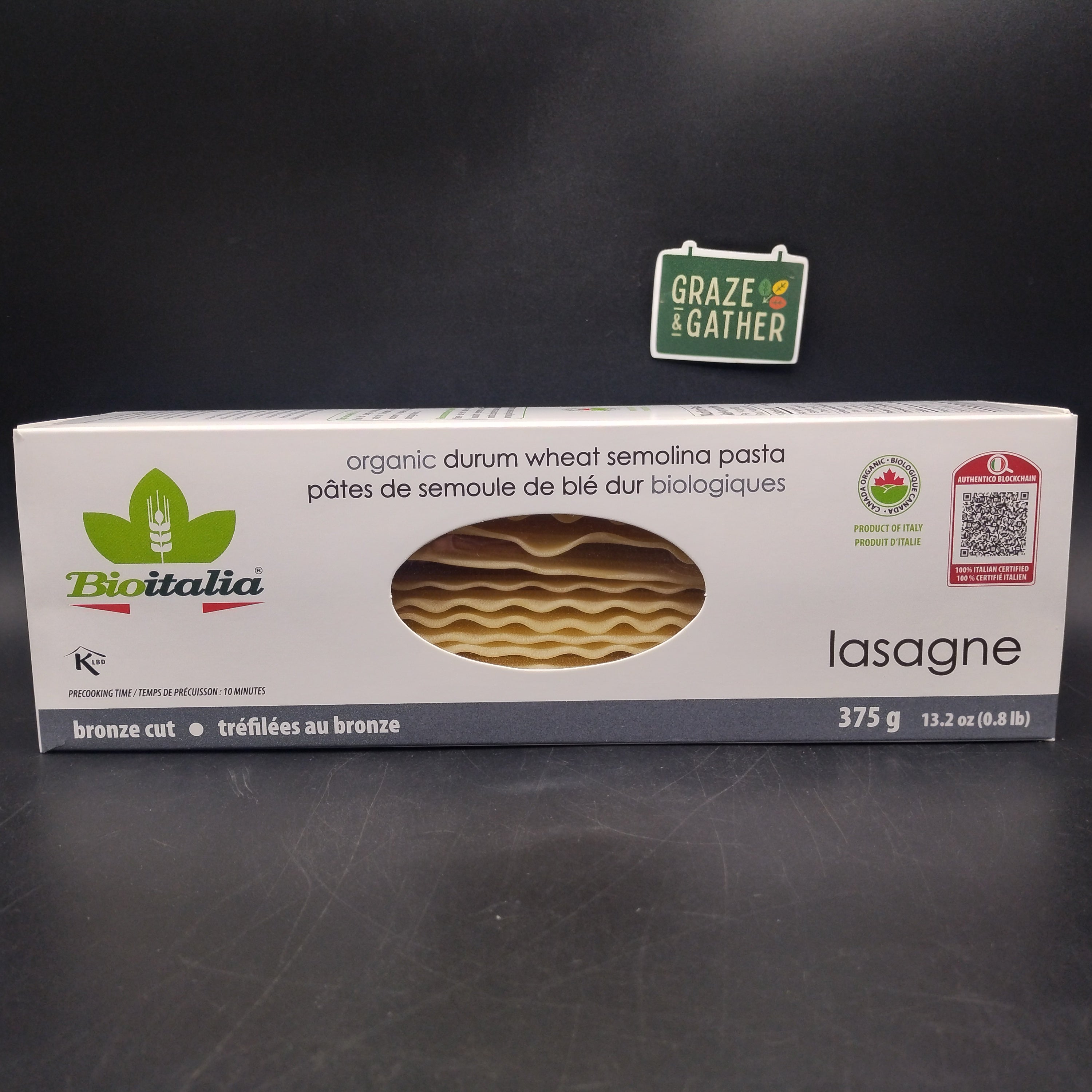Organic Bioitalia Durum Wheat Lasagne from a blockchain-registered supply chain.