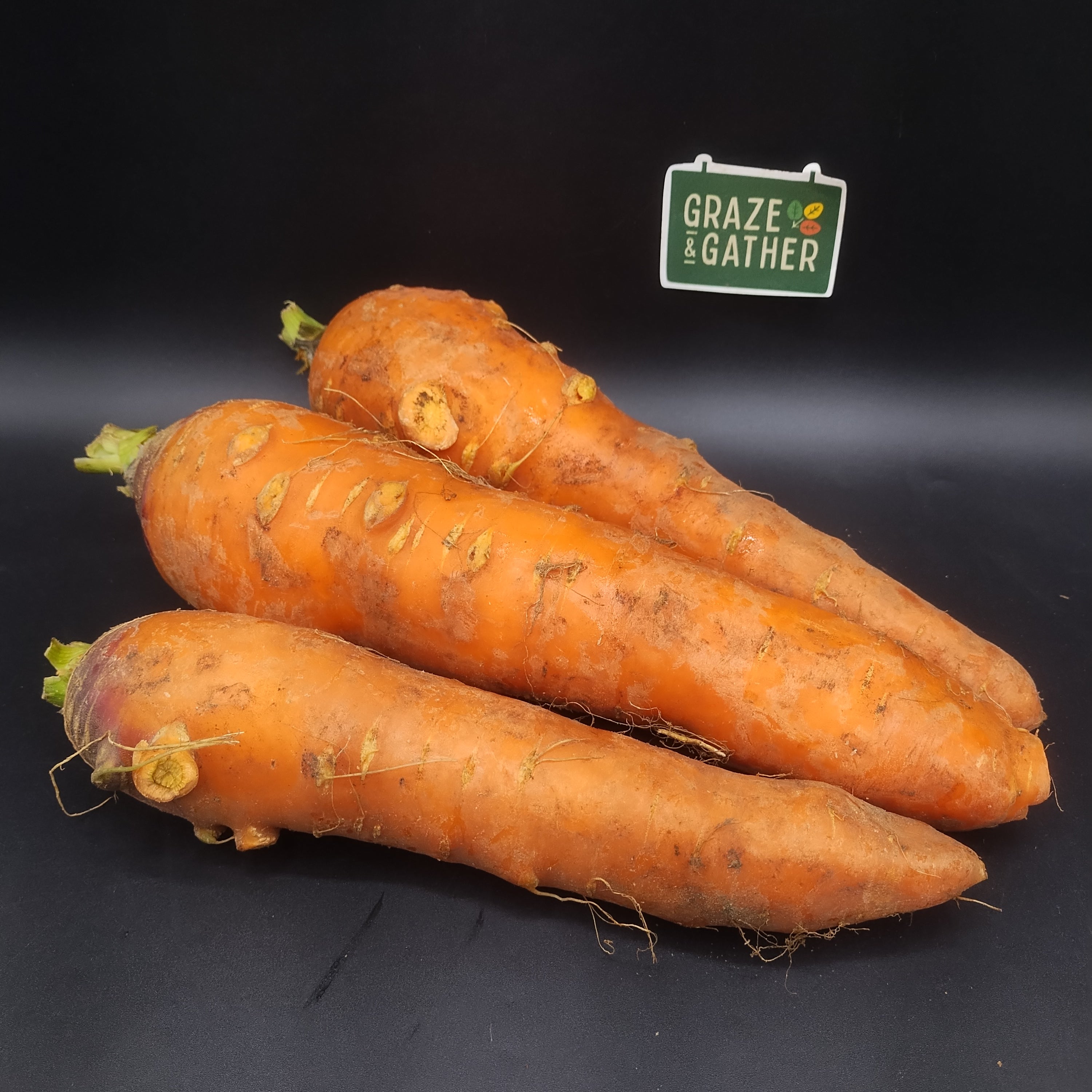 These are storage root vegetables and often a lot larger than the narrow root veg we find in the grocery stores. They are perfect for grating raw into salads and grain bowls, or for making carrot cake!