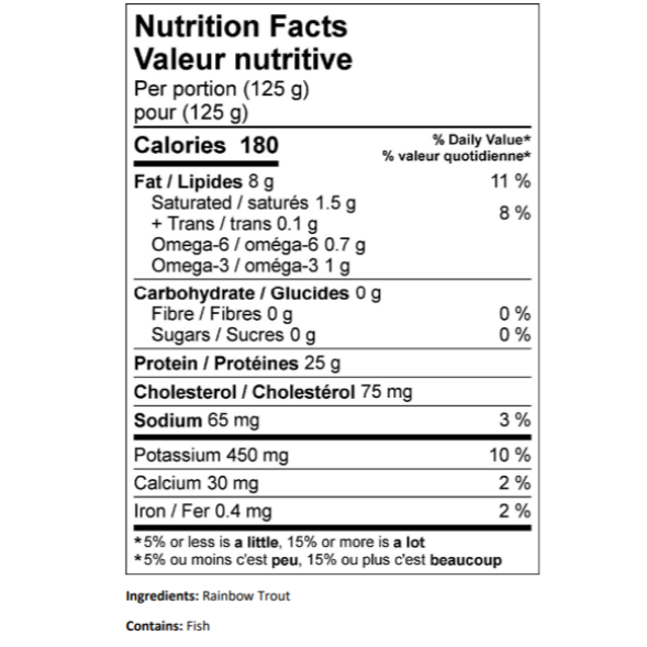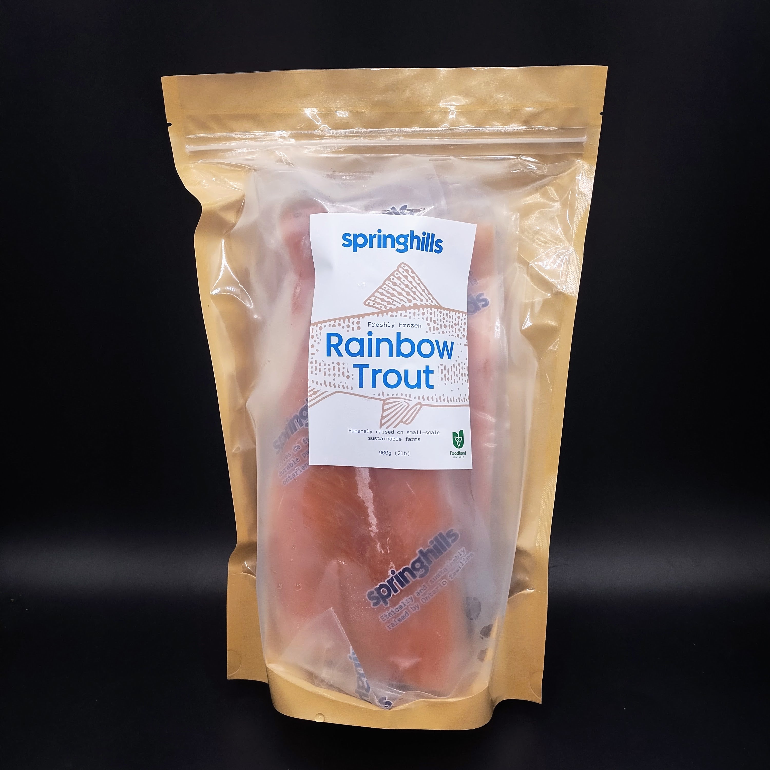 2 pounds of Rainbow Trout fillets, individually vacuum sealed.
