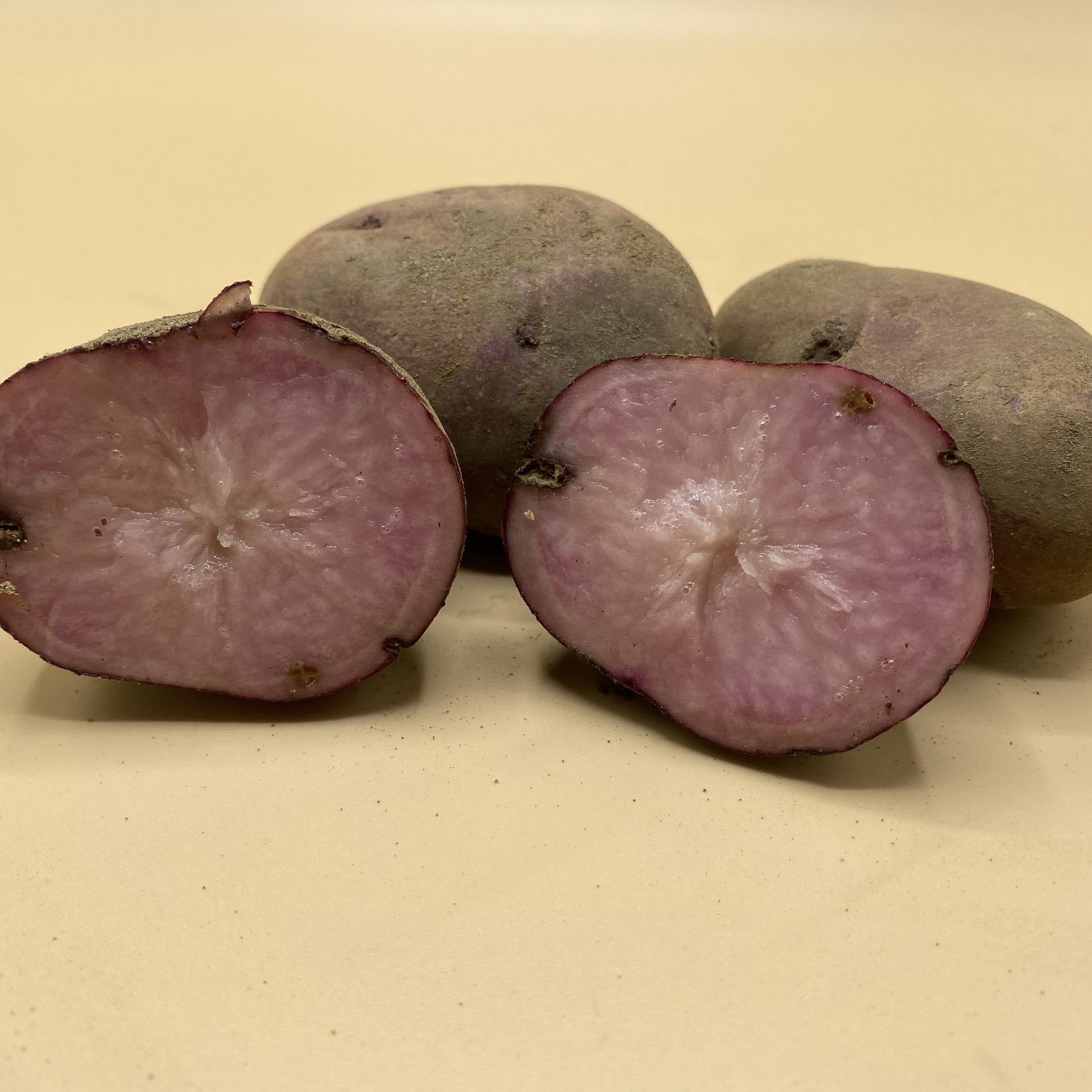 Terra Rosa potatoes are an heirloom fingerling variety with deep magenta skin and flesh that can be pinkish and marbled with white. The awesome thing about this variety is that they maintain their colour when cooked, and are also excellent for making chips and fries, so add a splash of colour to any dish. They can also be microwaved, baked, and made into potato salad. The flesh cooks up sweet and creamy, and contains lots of antioxidants. They can be grilled and are similar in performance to Yukon Golds.