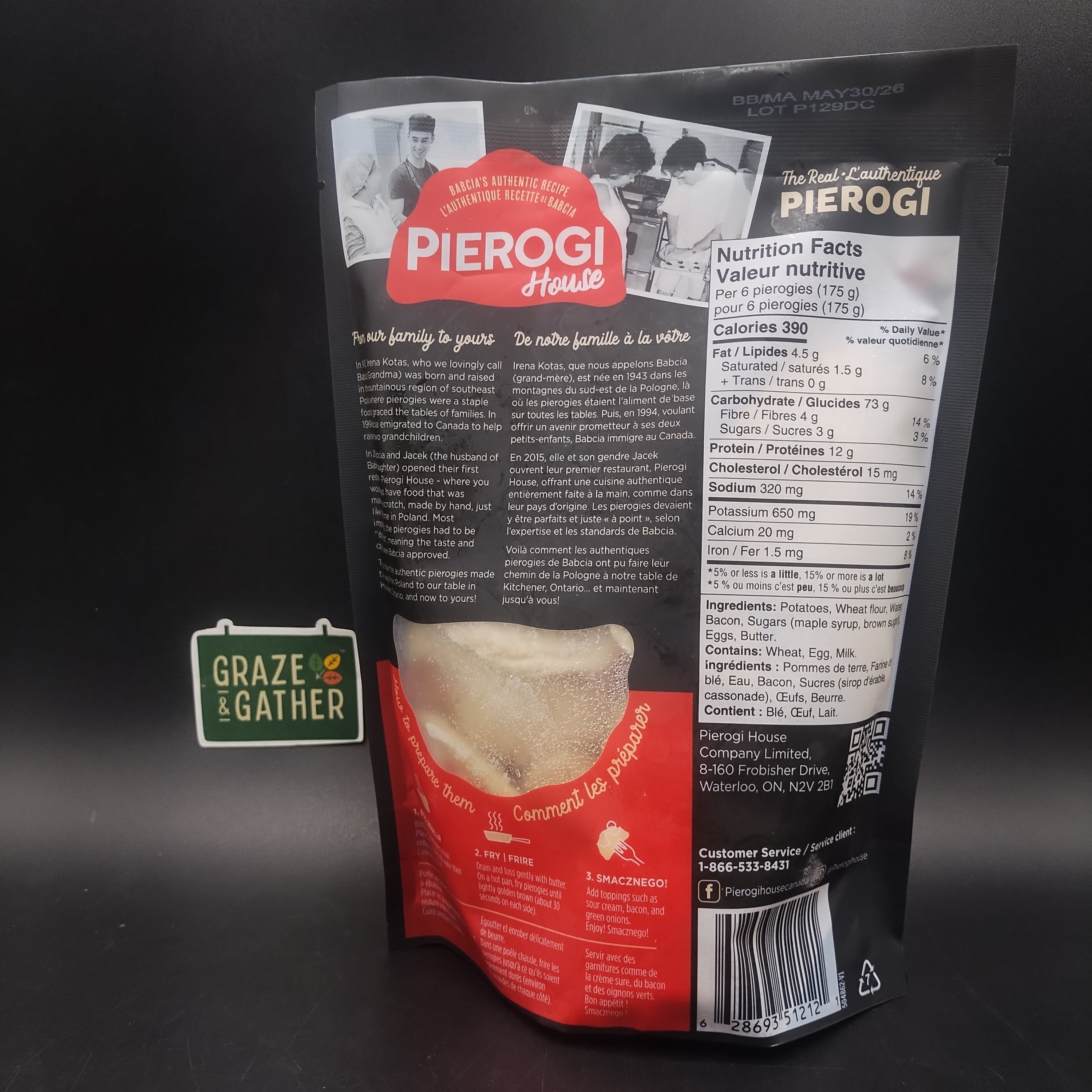 Ingredients: Potatoes, wheat flour, water, bacon, sugars (maple syrup, brown sugar) eggs, butter.