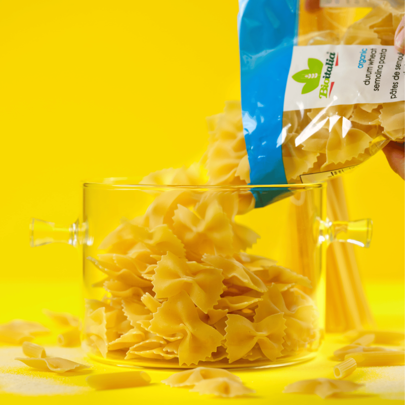 Organic Bioitalia Durum Wheat Farfalle from a blockchain-registered supply chain.