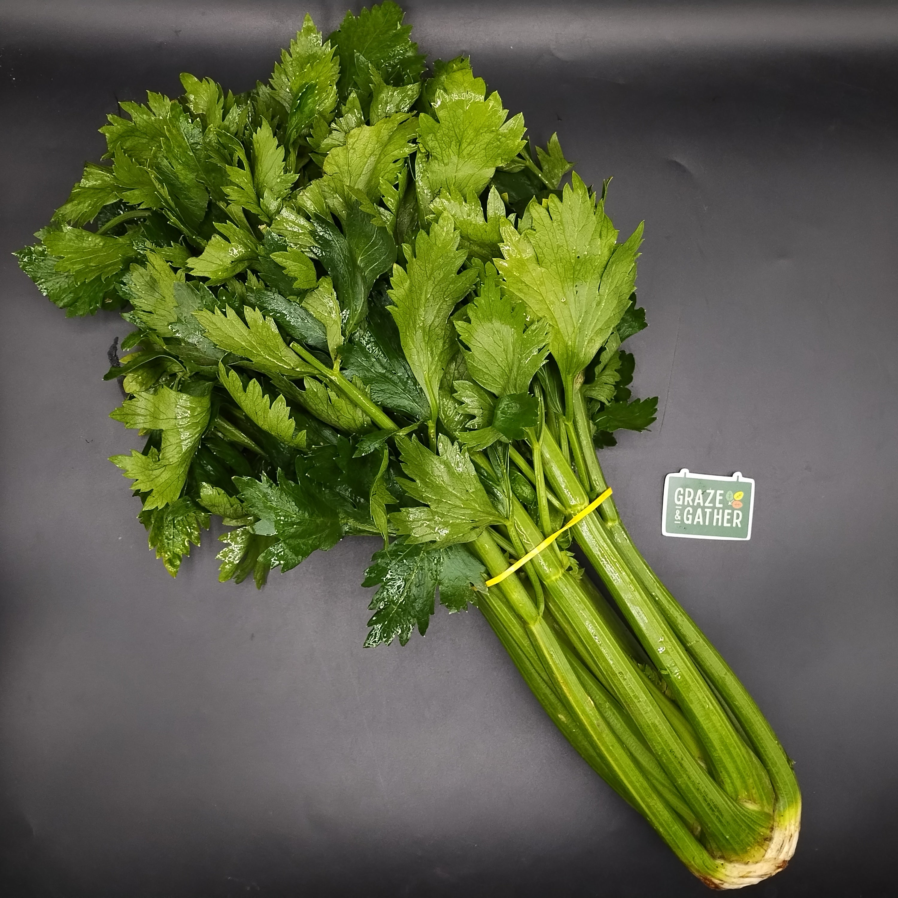 Celery is an excellent crunchy snack that is high in water content and fibre. The leaves can also be used as a substitute for flat parsley or any other aromatic herb and taste similar to fennel or anise. They can be sauteed or pureed into soups, stews, and sauces to make delicious, sustainably cooked dishes! Celery is typically ready for harvest in Ontario in late summer.