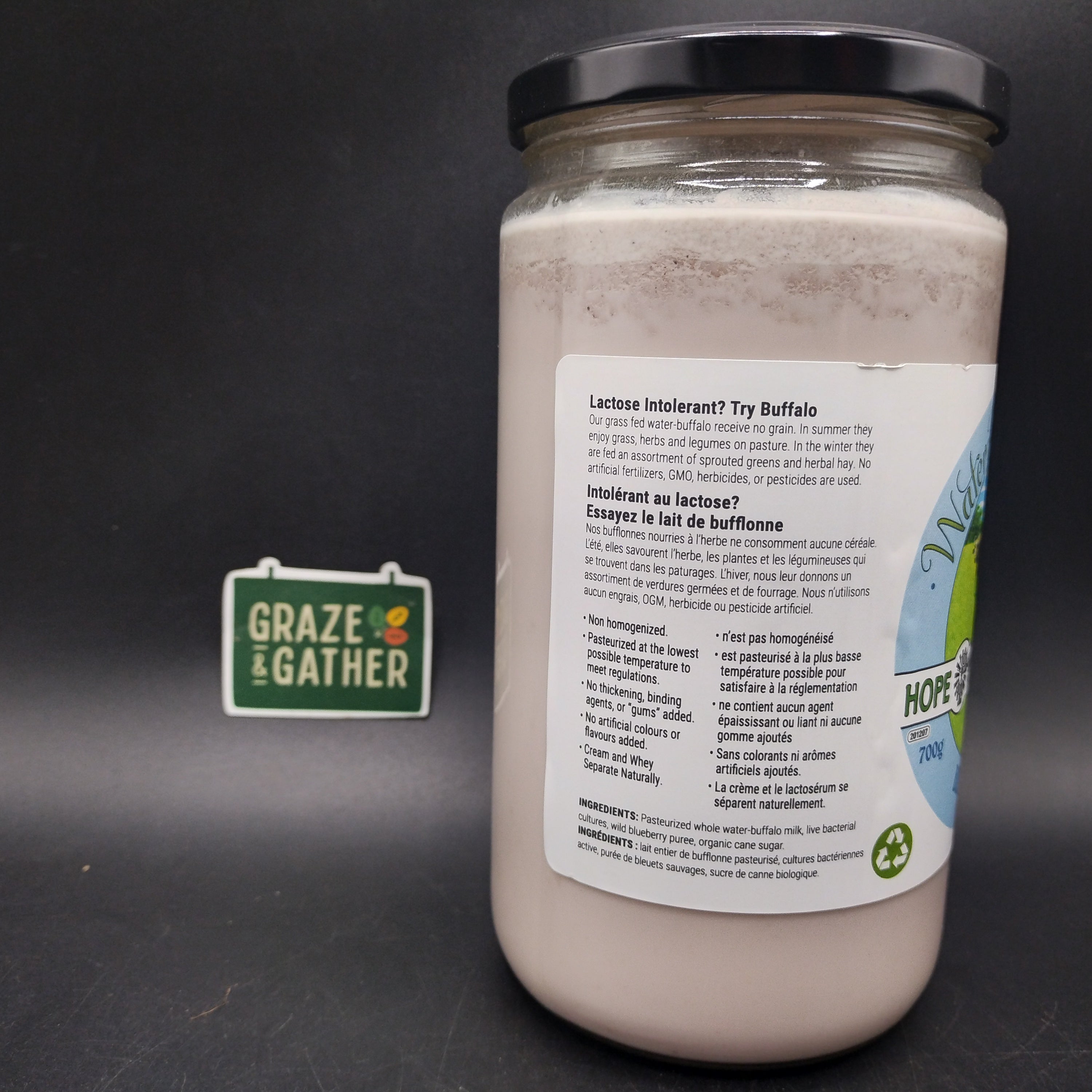 Ingredients: Pasteurized whole water buffalo milk, live bacterial cultures, while blueberry puree, organic cane sugar.